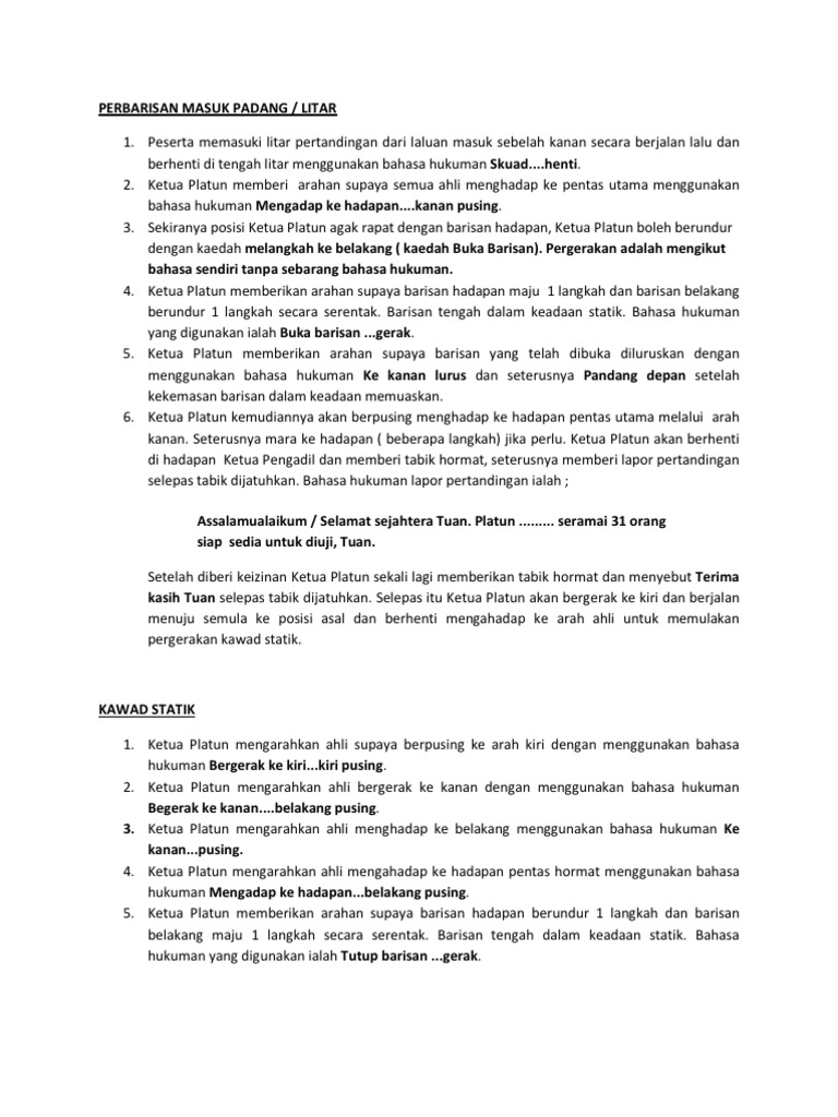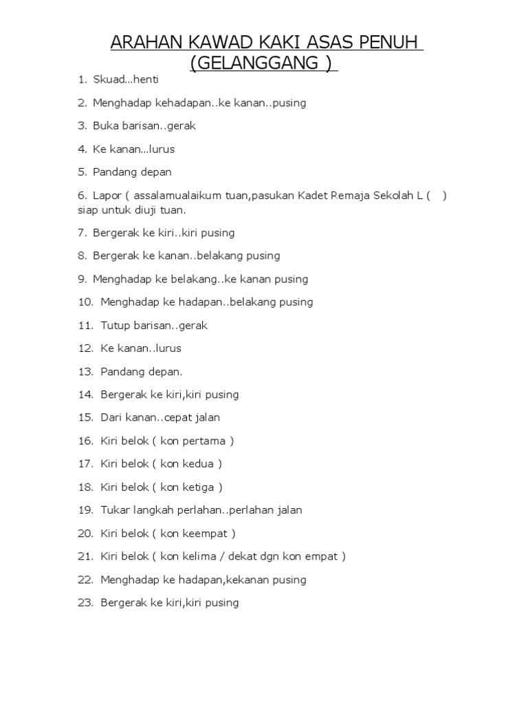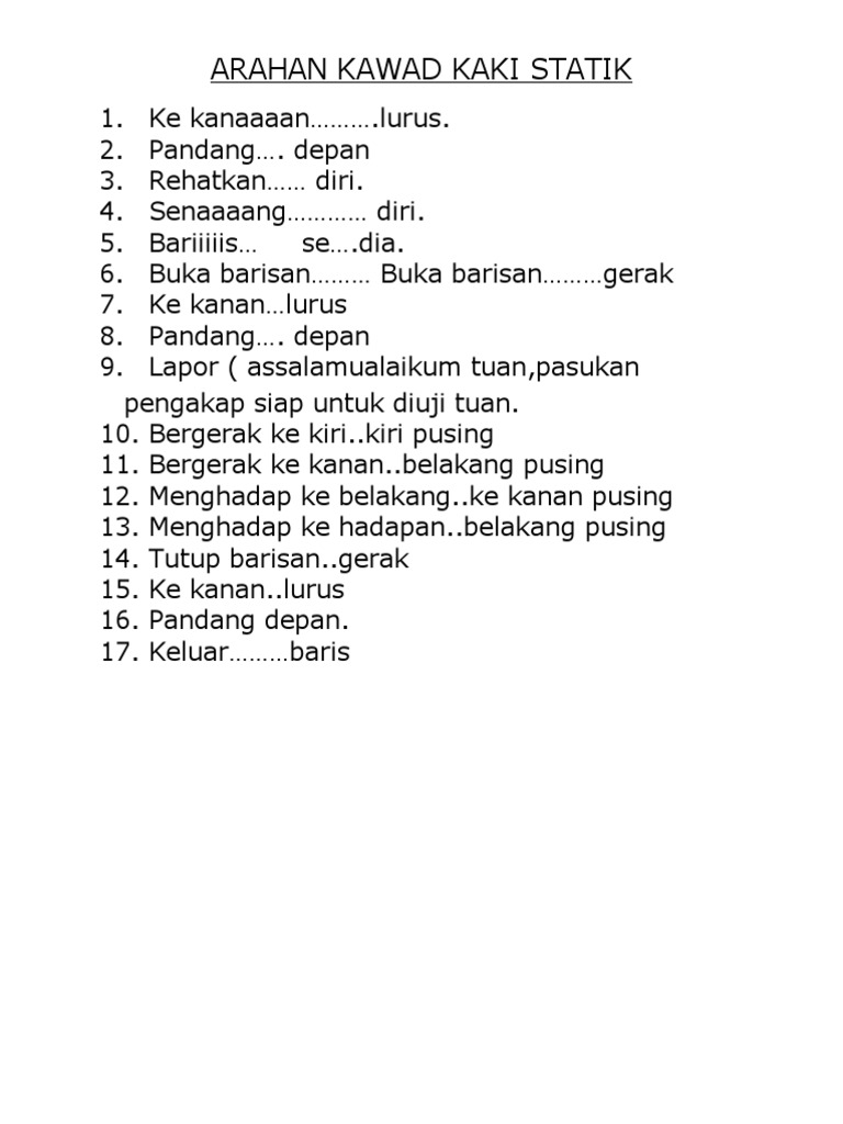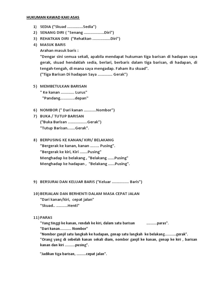 Arahan kawat kaki. 82 11 82 found this document useful 11 votes 20K views 4 pages. Asas kawad kaki tkrs statik siri 1.